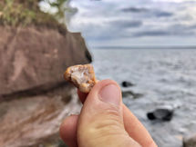 There is a rare opportunity to create a public trail connection on nearby city-owned land that would lead to a 30-foot sandstone waterfall, a gravel beach, and a sheltered sandstone cove on the shore of Lake Superior.